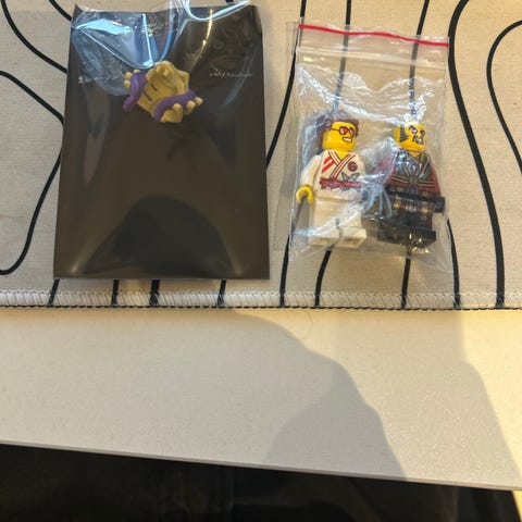LEGO minifigurer og heste. Sættet på billedet består af flere minifigurer i forskellige dragter samt to brune LEGO-heste. Egnede som tilbehør til LEGO-byggeri, legescenarier eller udvidelse af eksisterende LEGO-samlinger.