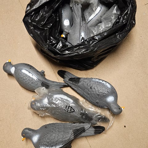 Lokkeduer med pind sælges samlet. Duerne har været brugt.