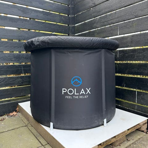 Cylindrisk kar med polstret kant og ydre overtræk. Karret har beskyttende overtræk, isolerende termolåg og non-rip toplag ifølge illustrationen på produktet. Velegnet til isbade og koldtvandsterapi. Leveres med aftageligt overtræk og tilslutning i bunden til påfyldning og tømning af vand.