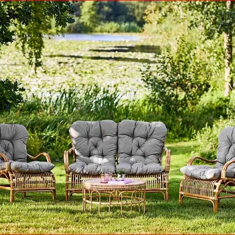 - Materiale, taburet: Polyrattan + pulverlakeret stål