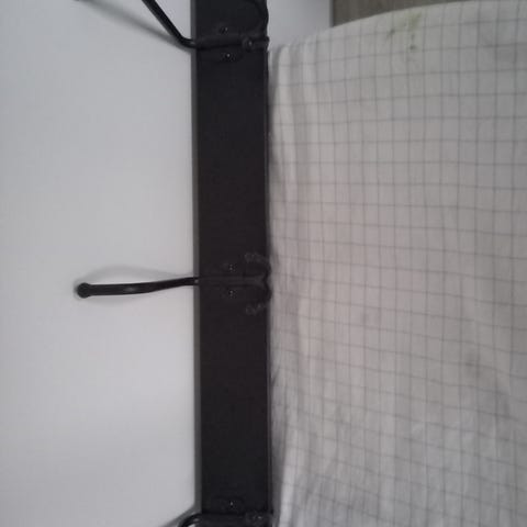 Hattehylden af smedejern har seks kroge, og den er 77cm lang. Den koster 500kr.