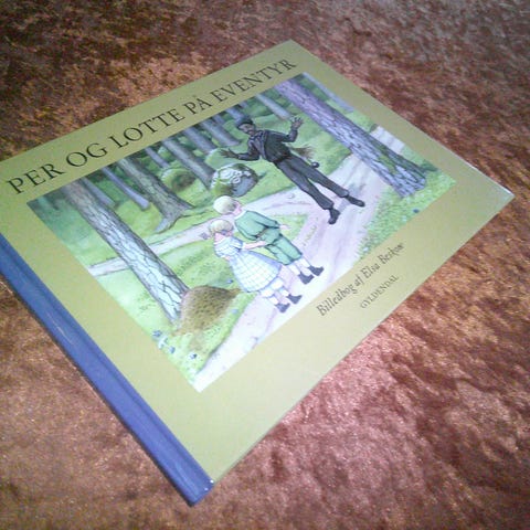 Billedbog i farver. Mens hr. Blå og tante Grøn, tante Brun og tante Lilla tager sig en lur, sejler børnene Per og Lotte trods forbud alene ud i en robåd.