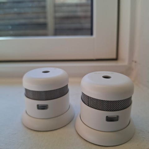 Fra Cavius - dansk design. I hvid. 5 års batterilevetid. Den måler bredde 5 cm og højde 4 cm. Skal monteres i loftet. Kan frit leveres til kantsten i Københavnsområdet