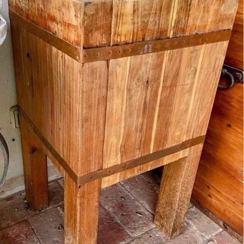 Stor Slagterblok/Huggeblok i massiv bøgetræ,stel i fyrretræ.