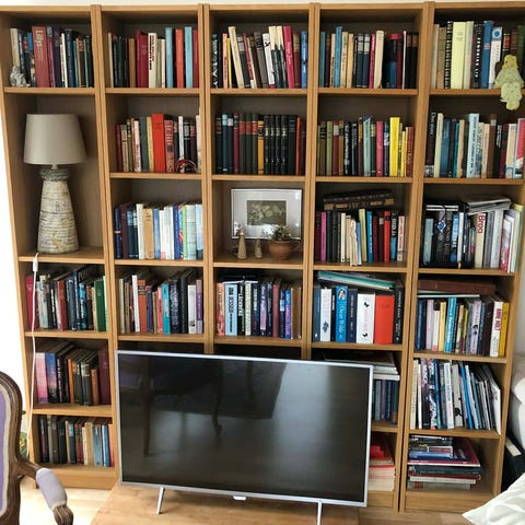 Fint lille IKEA Billy skab i hvid med en enkelt låge og greb i guldfarvet metal. Skabet har fire indvendige hylder. På toppen er der et mindre område med lidt struktur (se sidste billede), ellers er den fin. Som med andre ikea-møbler bør den skrues fast til væggen for at den står helt stabilt - beslag til dette medfølger.