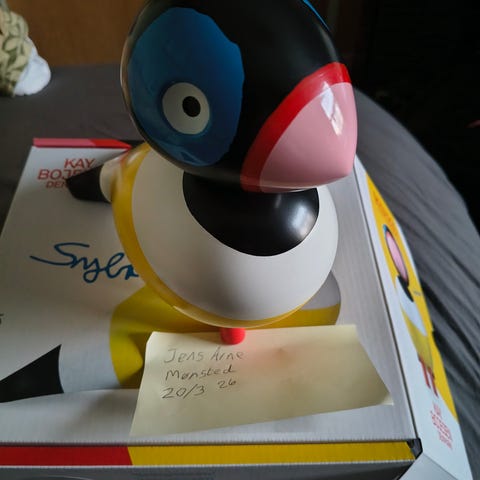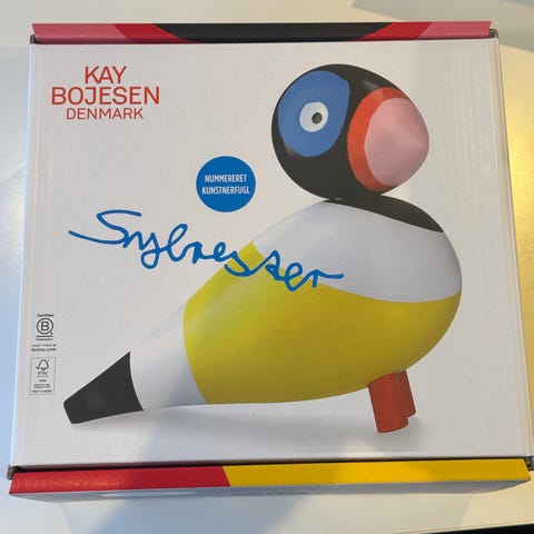 Når Kay Bojesens ikoniske sangfugle møder Leif Sylvesters livlige penselstrøg, sker der noget helt særligt. To af Danmarks store humørspredere – én i kunst og én i design – er gået sammen om en kollektion, der emmer af personlighed, fantasi og humor. Sangfuglen er håndmalet og signeret af Leif Sylvester.