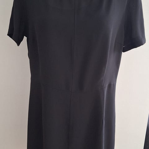 Superflot grøn kjole fra InWear med flot detalje foran. Farven kalder InWear for 'warm green', jeg ville nok kalde den flaskegrøn. Kjolen er helt enkel med lange ærmer og med V-hals. Eneste "pynt" er den flotte knudedetalje foran. Den sidder til foroven ned til taljen hvor den er skåret og får større vidde i underdelen - nærmest A-facon i underdel. Kjolen er en str xxl, men den er lille i størrelsen synes jeg, men se selv mål. Måler ca 2 x 54 cm over brystet. Længden er ca 115 cm. Materiale: 94% recycled polyester/6% elastan. Den er helt ny og ubrugt og stadig med papmærke med pris. Den kostede 700 kr - jeg sælger den for 200 kr.