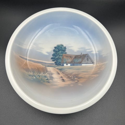 Lyngby porcelæn malet af Eva 1983 porcelærskål med grøntsagsmotiv hvid Sender