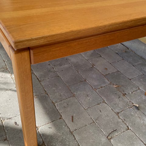 Firkantet sofabord i lyst egetræ med glat overflade og naturlig struktur, ,Bemærk at mail, chat og beskeder ikke besvares, og varen skal købes på knappen "Gå til varen"