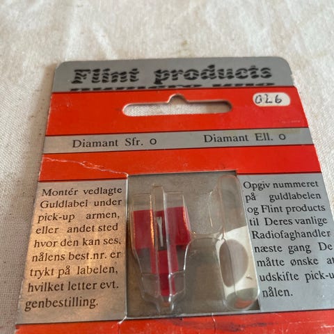 Flint Products diamant pick-up nål til pladespiller. Reservenål i original blisterpakning. Egnet som udskiftningsnål til kompatible pick-up systemer, hvor der anvendes diamantnål. Velegnet til afspilning af vinylplader på ældre eller klassiske pladespillere, hvor denne type nål er specificeret af producenten.