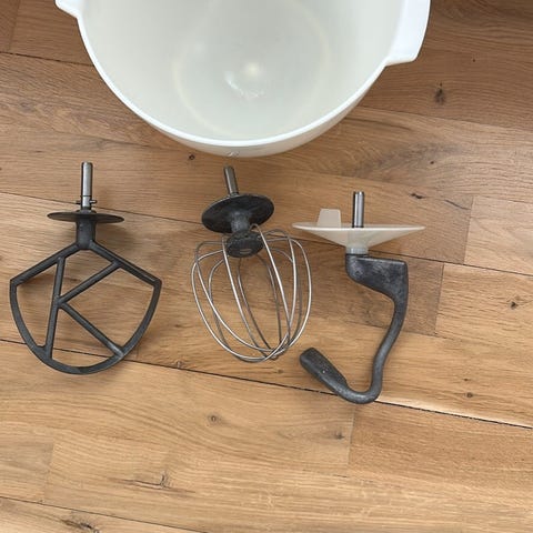 Kenwood rørekroge til Major og lignende. Sættet består af en dejkrog og en K-spade. BEMÆRK at de ikke bør vaskes i opvaskemaskine.