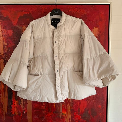 Bitte Kai Rand dunjakke i one size til kvinder. Jakken er fyldt med dun og har et multifarvet mønster med overvejende lyse og mørke nuancer.. Velegnet som let overtøj i overgangsperioder eller milde vinterdage.