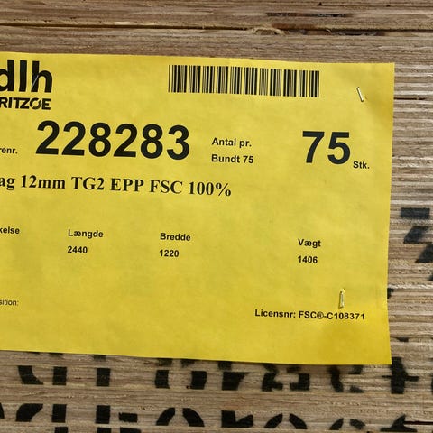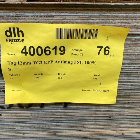 Tag/gulv krydsfiner HUSKY 2440x600x15mm TG2. FSC Mix Credit. Enkelte plader kan have mindre kantskader. Mål:2440x600x15mm.