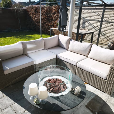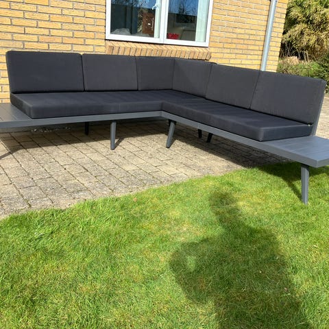 Hjørnesofa loungesæt til haven med grå hynder