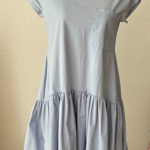 Mads Nørgaard hverdagskjole blå stribet polyester dame str. S