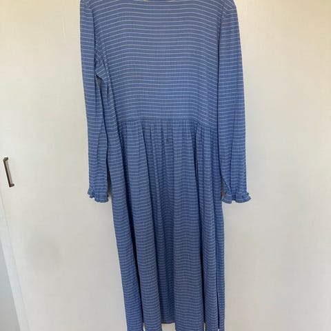 Mads Nørgaard hverdagskjole til kvinder i str. S. Kjolen er i blå nuancer med horisontale striber og er fremstillet i polyester. Modellen har lange ærmer og rund hals. Velegnet som hverdagskjole eller til afslappede lejligheder.