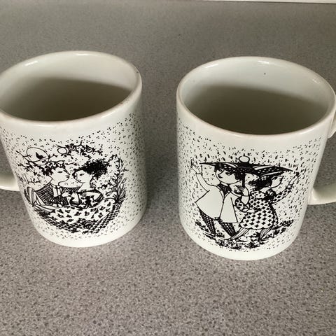 2 krus fra Bjørn Wiinblad - månedskrus for januar og februar - ingen skår, men små brugsspor indeni - sælges samlet - 2 stk. 200,-