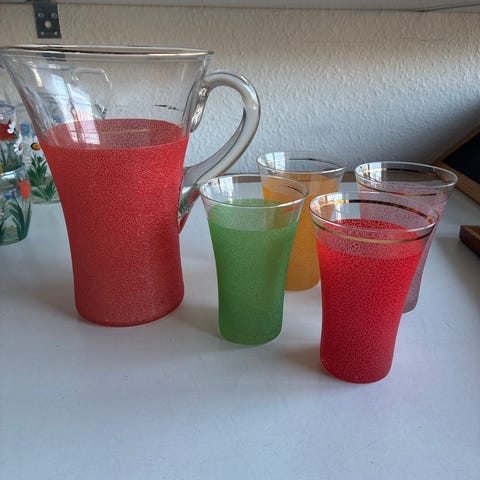 Vintage Kande og glas sæt glas med håndmalede blomster