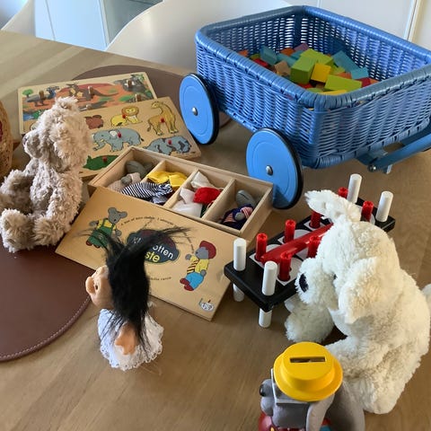 Jeg giver dette fine legetøj ,børne sandaler str 22angolus ,fine blomstrede gummistøvler mærke aigle str 23 og en perfekt weekend seng uden skrammer helt i orden alle steder.det gives væk da mine børnebørn er blevet store aftal med mig hvornår dette kan hentes jeg bor Parkvænget nr 8i Charlottenlund vh conny