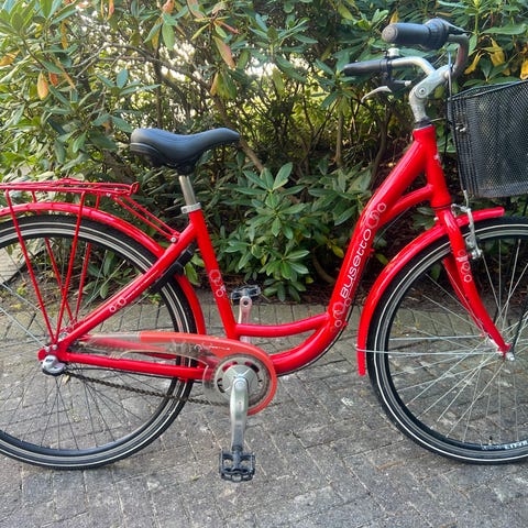 Super flot og velholdt næsten nyt Tysk kvalitet ny serviceret letvægt cykel med Aluminumsstel kører fint med 7 gear hånd og fodbremse fast monteret kurv fin 28 tommer dæk og fin blød gel sadel 48 cm stel passer til 150-175cm