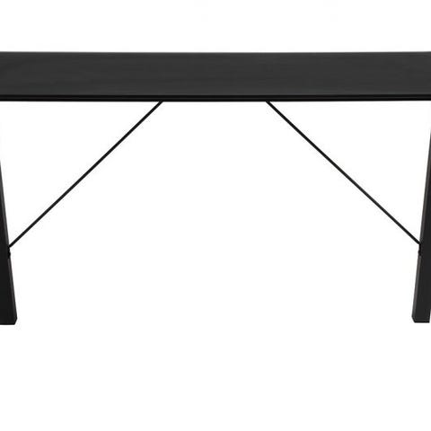 Skrivebord med sort, rektangulær bordplade i glas og metalben. Bordet har enkel, moderne udformning og egner sig til brug som arbejds- eller studieplads. Der ses 2 mindre afskalninger/slidmærker på bordpladens overflade. Velegnet til kontor, hjemmekontor eller værelse, hvor der er behov for en funktionel arbejdsplads.