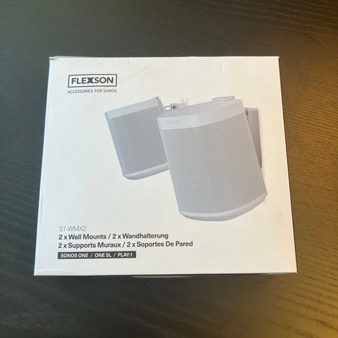 Sonos Flexson P1-WM vægbeslag til Sonos Play:1 i hvid. Vægbeslaget er designet specifikt til Sonos Play:1 højttalere og giver mulighed for fast montering på væg. Beslaget består af metaldele med monteringshuller til skruer og kan bruges til at placere højttaleren tæt på væggen. Egnet til brug i stue, køkken eller andre rum, hvor Sonos Play:1 ønskes monteret på væggen.