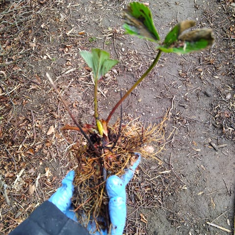Jordbærplanter i potter med grønne blade. Planterne står i mindre plastpotter og bakker, klar til udplantning i have, højbed eller krukker. Velegnet til køkkenhave eller bærbed, hvor de kan give jordbær efter etablering. Planterne kræver solrig placering og jævn vanding for god vækst. Jordbærplaner af egen kvalitet ( Honey, Toscana, Korona ), som er i overskud fra sidste sæson. Prise er 10 kr per stk.