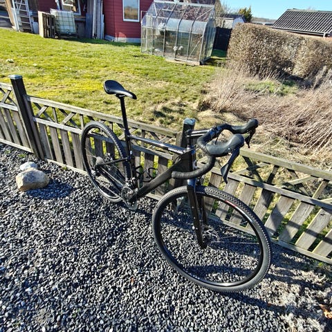 Canondale Topstone 4 carbon gravelbike, 2 år gammel. Sælges fordi jeg gerne vil skifte til en mountainbike med et bredt styr. Kører supergodt og har et lækkert, præcist gearskifte. Størrelse Large, passer til ca. 176-192 cm højde. Nye Pirelli dæk juni 2025 (700x40c). Farve grå/blå. Stelnummer WCSGKA60507U, kvittering haves. Udsalgs-nypris på nettet ca. 18.000 kr. inkl. skærme & pedaler. PS: Vi har også en anden gravelbike i str. Small til salg. Se annonce.