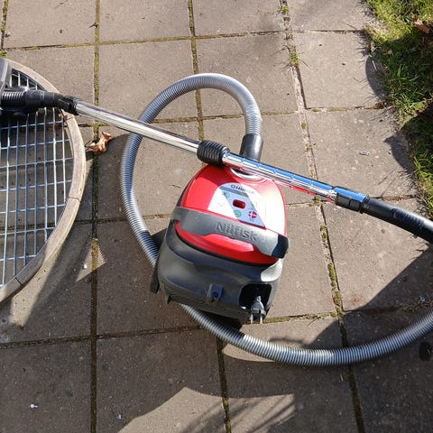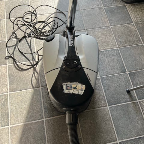 Nilfisk Coupe Special støvsuger i grøn og sort. Kompakt model med teleskoprør, slange og hjul for nem manøvrering.
