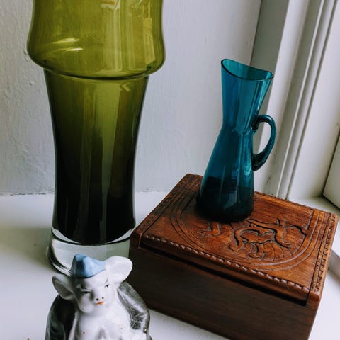 #vintage #retro #genbrug #paentgammelt #loppefund #loppe #keramik #vase #mahogni #ramme #billedramme #tørredeblomster #blomster #pung #miniature #slangeskind