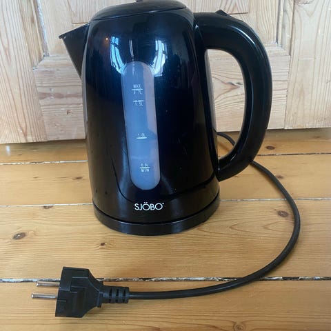 Sjöbo elkedel fejlkøb Harald Nyborg 59 kr. med en kapacitet på 1,5 liter i sort plast. og står på en rund sokkel med centerkontakt. Den er egnet til opvarmning af vand til f.eks. te, kaffe og madlavning i hjemmet eller på kontoret.