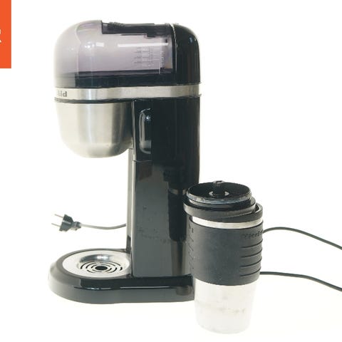 KitchenAid filterkaffemaskine i sort med glaskande og måleskala på siden. Maskinen har aftagelig filterholder i plast, samt gennemsigtig kande med håndtag i glas.