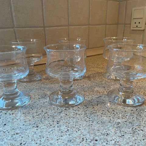Sælger disse smukke glas der minder meget om Holmegårds 'Skibsglas' - bemærk den fine lille luftboble i foden