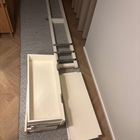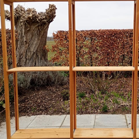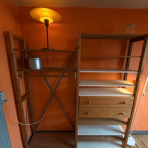 Reolerne består af flere sektioner med åbne, justerbare hylder og egner sig godt til bøger, lp’er, opbevaring, dekoration m.m.
