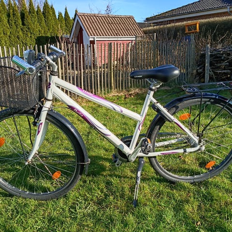 Velholdt, køreklar Puch pigecykel med ny kurv, ringlås med 2 nøgler, ny ringeklokke. Kører, bremser fint. Tre indvendige gearene skifter som den skal. Passer bedst til ca 9-14 årige.