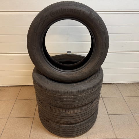 2 stk sommerdæk 225/60-18 104V Continental PremiumContact 6. Dæk er som nye, måler 6,8mm.