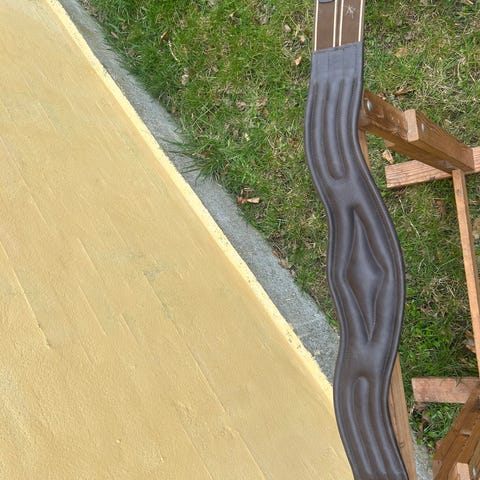 Blød lædergjord fra Fairfield i mørkebrun, 140 cm. Har elastik i begge sider. Brugt sparsomt.