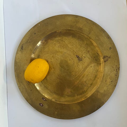 Hammerslået fad messing look