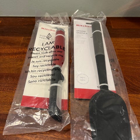 Sort kitchen Aid forklæde med lomme foran knap lukning i nakken og bindebånd bag på.