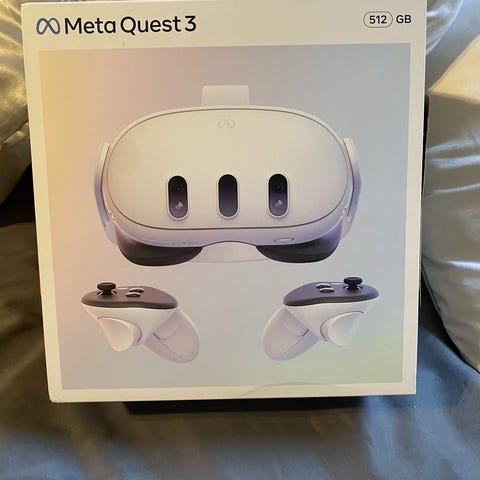 Meta Quest 3 VR headset med tilbehør - rem/hovedstrop skiftet til en fra mærket "Kiwi", controllers har håndstraps fra AMVR og så er der et cover til linserne fra VRCover. Derudover et opbevaringsetui. Sælges da jeg ikke fik den brugt så ofte grundet plads mangel, og den er brugt meget få gange.