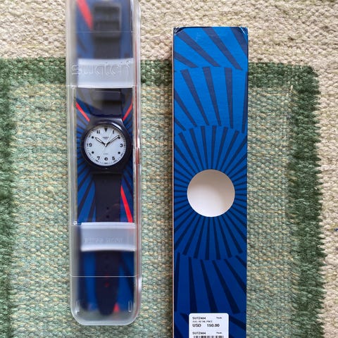Jeg sælger dette flotte Swatch ur, modellen hedder Sistem Thought. Det er aldrig brugt- og stadig i indpakning. Det er 42mm. Udgået model fra Swatch.