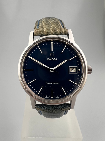 Uret måler 44 mm i diameter og er opbygget helt i stål, glas bagkasse med elegant stållåg henover, safirglas, sort urskive med datovisning og tydelig luminering, uret er monteret med brun textilrem afsluttet med spænde.
