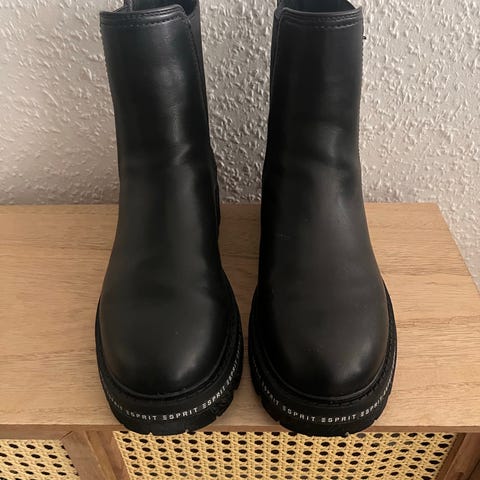Esprit støvler i størrelse 39. Ankelhøje støvler i brun nuance med plateau og høje stilethæle. Modellen har dekorative remme med metalspænder over vrist og skaft. Sål med mønster for bedre fodfæste. Velegnet som hverdag- eller feststøvle afhængigt af styling.