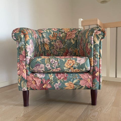 2 stk lænestole i blomstret farverigt stof ( samlet pris )