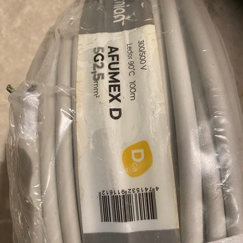 3g2,5 kvalitets installationskabel fra Prysmian sælges efter endt byggeri. Der er 83 meter tilbage på rullen. Nypris for 100 meter er 1400kr. Jeg sælger resten billigt for kun 700kr