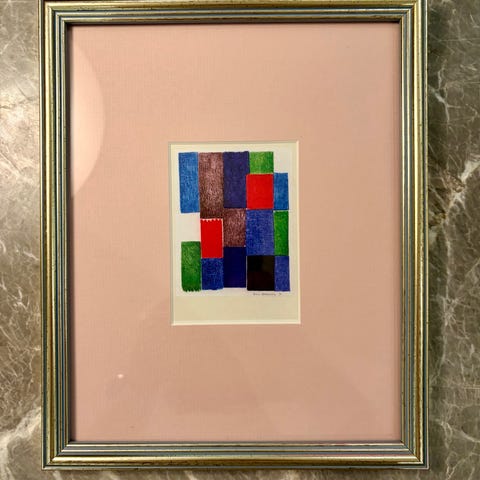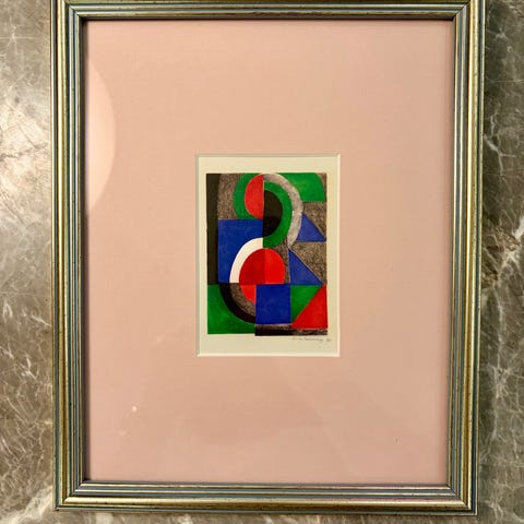 💛💚💙Fineste lille sonja Delaunay tryk i skønne farver. Sat i smuk sølvramme i lyserød passepartout