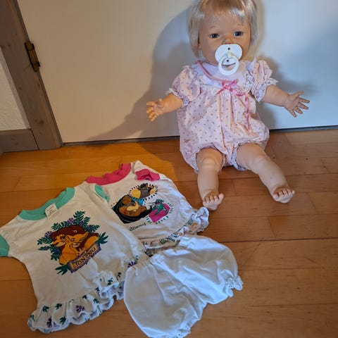 Slaske dukke 40cm med langt hår og hestehale, kan åbne og lukke sine øjne, dukke kan i begrænset omfang gentage hvad du siger (bruger 1 stk. 9v batteri, medfølger ikke) der medfølger 4 sæt tøj, halstørklæde og vanter, sko og strømper. Pænt og velholdt