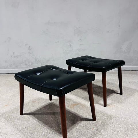 Sæde i sort kunstlæder og ben i teak.