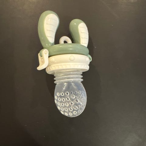 Food feeder, Kidsme, Smart sut til frugt så barnet kan få saften uden at få frugten galt i halsen. Brugt 2 gange da min datter ikke ville bruge sut af nogen art.