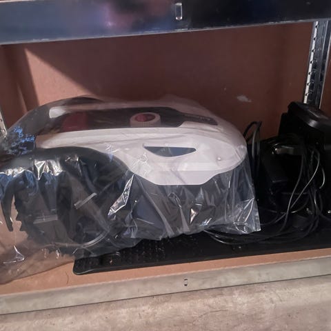 Afgrænsningskabel, pløkker og ladestation medfølger.